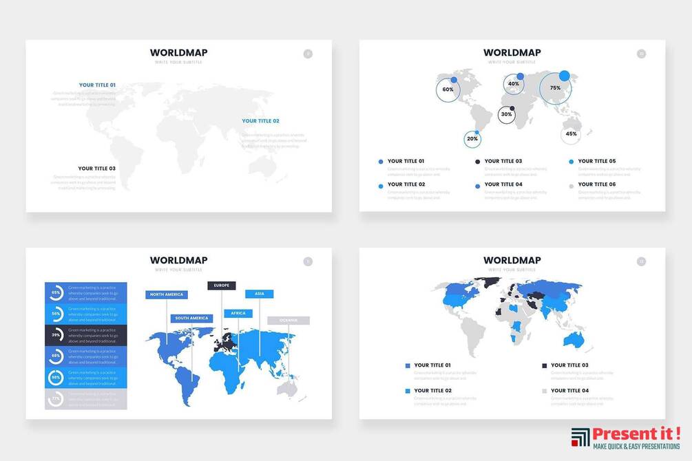 Are you looking for visual templates that can help elevate your presentations and grab the attention of your audience? Look no further than Present it!’s World Map Infographic Templates!